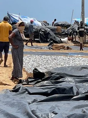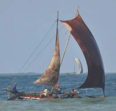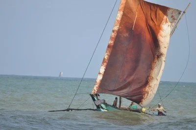 Then there is a reminder that not all is bad in the world as sailboats begin to appear on the water as the place comes to life. They are called oruwas, traditional outrigger fishing boats carved out of tree trunks and are outfitted with nylon fishing nets. On a short walk last evening, I saw many ladies at curbside selling their catch, five to eight inch fish in bunches. A scan of the horizon reveals fifty oruwas this morning.