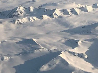 Built on permafrost (permanently frozen soil) that ranges from 30 to 130 feet deep, and home to 2,667 people of 50 different nationalities and 4,000 snowmobiles (called snow scooters here), Longyearbyen is the planet Earth’s northernmost city. On the way up, the view from the air makes it clear: there is nothing but snow and ice and cold cold water surrounding this place.
