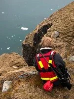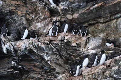 Birds nest on the cliff safely away from predators. Rutger explains that their eggs are pear shaped--they won’t roll off the narrow ledge.