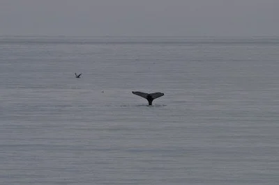 At dinner, salad just completed, lambchop just coming out, the PA came alive with Elke’s voice, “Humpback.” We scrambled up to the outside decks to find a small one, alone, diving. I got just a bit of tail.