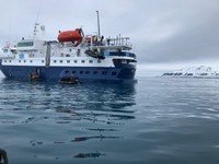 Tonight, we stop at 14th July Bay. We do this tonight because tomorrow is predicted to host bad weather which will keep us in fjords and out of major channels; and, more significantly, out of the zodiacs. We expect 15-18 knot winds unlike today which was still. The wind moves the ice which restricts our potential path; we do not operate in fast moving pack ice. The forecast for wind prevents Elke from making a plan for Saturday and onward. Simply put, she packed a lot into today because the future may not be conducive to a similar concentration of off-ship adventures.