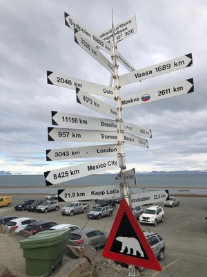 Third. Antarctica is a continent surrounded by oceans; the Arctic is an ocean surrounded by continents. Oh, and humankind make their homes around the Arctic in North America, Europe and Asia. There are no humans making their homes around Antarctica. To be clear, Svalbard is on solid earth, albeit frozen. North of here is only ice.