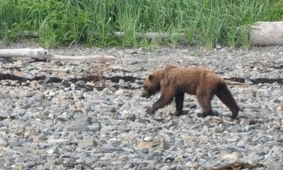 At 3:45, between repeated bubble net feeding opportunities, Josh spotted a coastal brown bear on the shore of False Bay. The bear meandered a bit and then disappeared into the forest. Another first for me—a bear in the wild.
