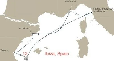 Drawing back the 7105 window drapes, we find that we will soon be tied up adjacent to the Virgin Valient Lady. Sir Richard Branson's cruising concept--designed to be disruptive--has already moored. She is brightly lit but silent. If her reputation is accurate, nobody onboard has, at this hour of 7:00 in the morning--been in bed for more than a couple of hours. Adults only, my understanding is that she is the party boat, here docked on the party island in the Mediterranean.
