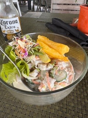 I have four hours to wait for my onward flight to Aitutaki. A bit of research reveals that there is a hotel bar across the road. I make my way to “The Islander” and take up residence on the windy deck adjacent to wandering hens and roosters to watch waves break 150 yards from the railing. A couple of Coronas and a fresh tuna bowl tide me over as I pen all of this.