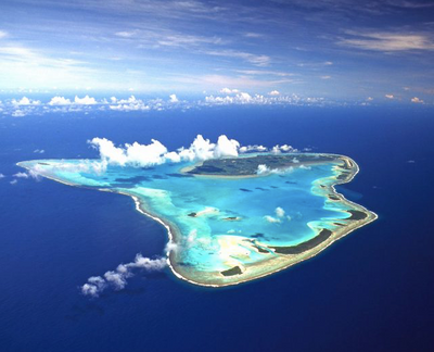 The island of Aitutaki is, well, a dot of slightly less than seven square miles. Two thousand people live here, all with a fine view of Maunga Pu hill which rises 404 feet above sea level. Aitutaki is a peninsula island with a reef running along its eastern edge with many small islets along the east, south and southwestern borders. Many call the surrounding lagoon the most beautiful in the world. The main island--and 15 of the small islets--are volcanic. Most of the even smaller islets are coral and are called "motus." A couple of the very smallest ones are actually more sand than coral and are referred to as "sand cays." Around all of that is a barrier reef with the only safe routes through to the Pacific on the south and west sides. If entering from the west, one sails directly into the harbor of Arutanga, the main village on Aitutaki atoll.