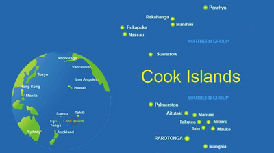 I appreciate that on no part of this journey must I cross the international date line--denoted on these maps by the weird dotted line. You can see how both French Polynesia (Tahiti) and the Cook Islands (Rarotonga and Aitutaki) are notched out to share a calendar day with the U.S. but not with the much closer nations of New Zealand and Australia as well as Japan and the rest of the far east.