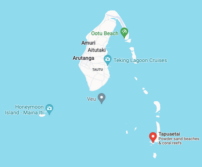 At Aitutaki, one of those Cooks, just across the clear waters lies Tapuaetai, "One Foot Island," awarded "Australasia's Leading Beach" in 2008. It is one of the 22 islands in the Aitutaki atoll and sits four miles from my hotel. It is three football fields long and just over one football field wide--and it rises to a height of five feet above sea level. That is the scale of things here. Nothing is big. This is that kind of place.