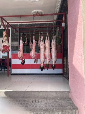 In case you are wondering why the animals' heads are left on the butchered carcass it is so that the person who demands to buy goat meat can be assured that what they are buying is, indeed, goat meat and not something else.