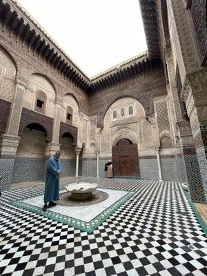 Fes is extraordinarily old. Founded in the 8th century. 500 years later the Mellah—Jewish Quarter—took root. Fes (or Fez if you prefer even though they insist on the "S") became the capital of Morocco in 1912. Now, there are two old medina quarters and a larger modern urban area dating from the French colonial era. The medina of Fes (the historical center and where I spent my afternoon yesterday) is one of the world’s largest urban car-free areas. Nicknames for it abound ranging from the “Mecca of the West” to the “Athens of Africa.”