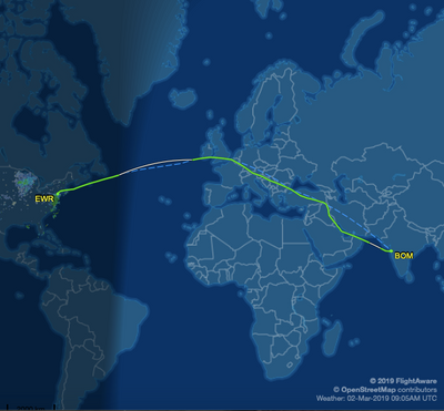 But back to our flight. According to Flightaware.com, on Tuesday, February 26, our flight was over eastern Russia on its normal direct route to Mumbai when it was abruptly diverted and, instead of continuing on to Mumbai, flew to Frankfurt, Germany, instead. That is the day that the aforementioned Indian fighter flew into Pakistan and attacked the town of Balakot which the Indian government said is a training camp for terrorists who staged a Valentine’s Day suicide bombing in southern Kashmir that resulted in at least 40 deaths. The next day, Pakistani and Indian fighter jets engaged in the skirmish where one "vintage" Indian "aging Soviet-era" MiG-21 jet was shot down by an US-made Pakistani F-16 fighter; the Pakistanis captured (and later repatriated) its pilot. The New York Times reports that Pakistan's use of the plane, "might have been a violation of the sales agreement," it signed when we sold it the aircraft.
