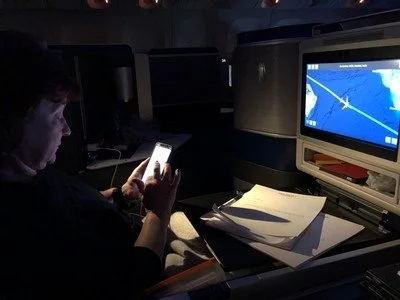 Our flight, wheels up to wheels down was a comparatively short 13 hours and 35 minutes tonight. We were aided by tailwinds of up to 152 mph at altitudes ranging from 31,000 feet to 37,000 feet with outside temperatures measured at 80 below zero. Only a couple of times did turbulence become an issue.