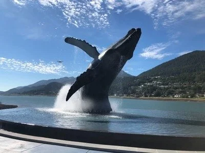 FYI: I got a question about the statue in Juneau asking if I was lucky to be that close to a breaching humpback or if I photoshopped the picture. It is a statue but the question gives credence to the description, "lifelike." It's just a statue.