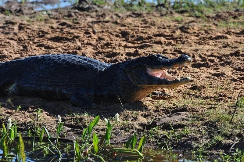 We drive through Cuiabá and then down the paved highway for a long haul and then down the washboard Trans Pantaneira Highway for another long haul on the way to SouthWild Pantanal Lodge. Birds galore, caiman all around, critters and more critters but no people to speak of. It is remarkable how few humans we encounter. It is Sunday and nobody is out but then maybe nobody is around either. I soak it all in but this is not great photo opportunity time as we are still traveling.