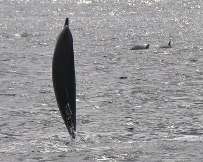 We are quickly, with Chris as deckhand, off on a short jaunt to the vicinity of Lemon Valley Point to see if the Pantropical Dolphin Pod is in residence. They are. Oh my, they sure are. 400 or so, we think. They are having more fun than even I am having.