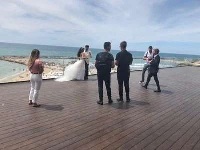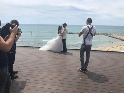 We, dressed in black tie and our finest packable frock, board busses for the half-hour ride to the wedding venue: Baya'ar Derech HaRakevet, Hadera, "located on one of the few and most beautiful nature reserves along Israel's Mediterranean coast." I will write about the marriage ceremony of Regina Radusky and Jason Yakubovich, the reason we came to Israel, in the next post.