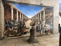 Moving on to the Moslem quarter we pay respect at a mosque and stop for a typical local luncheon feast. Just outside the restaurant is the Fifth Station of the Cross. We follow the path it is said Jesus walked to his crucifixion ending up at the Church of the Sepulture where many of the faithful anointed themselves or their belongings on the stone that was said to be where Christ was anointed after his crucifixion.